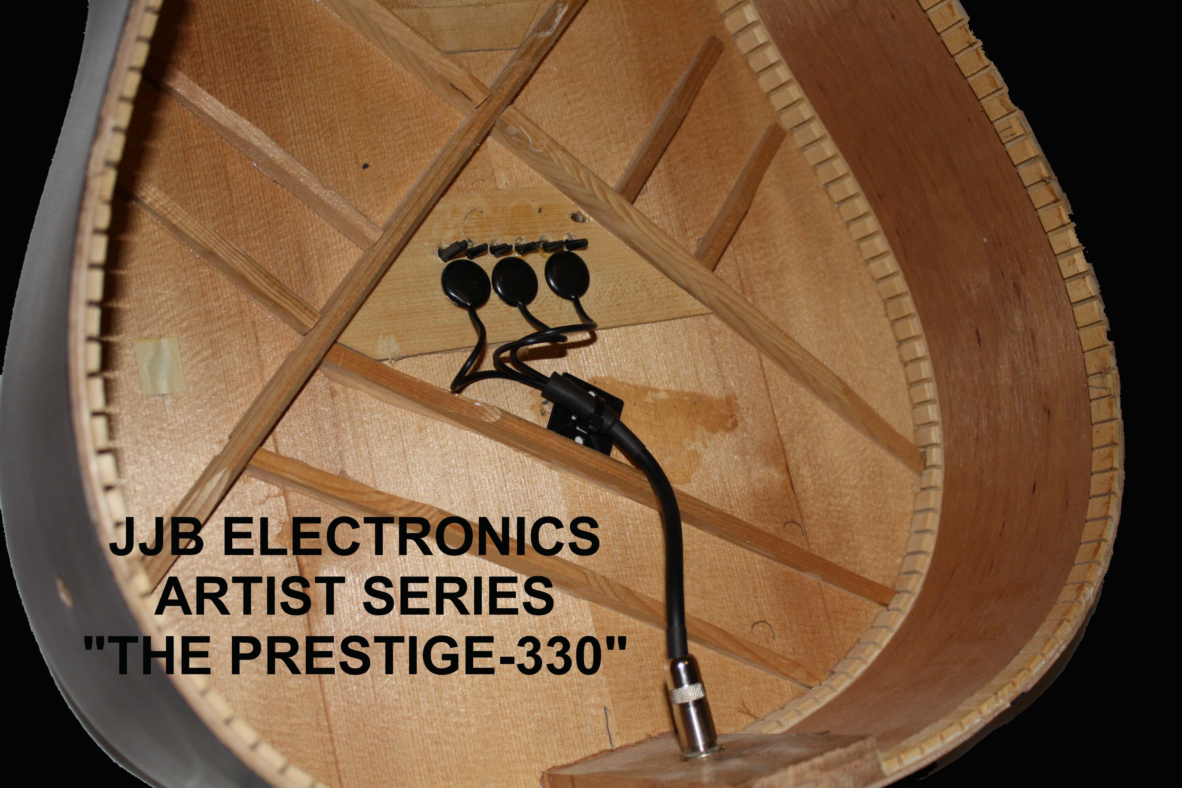 | ARTIST SERIES ELITE-430 RECOMMENDED USES New from JJB-Electronics comes the newest addition to our Artist series line of pickups, THE ELITE 430. Our new line of pickups are constructed with the finest components available today. In fact, they are the same components that are used by other companies that sell their systems for more than twice as much. The latest release from our new Artist Series, The Elite - 430. These are built using very high quality 20mm piezo's. We can now offer to substitute these for 15mm piezo's upon request. Please select the desired size from the drop-down menu above. This configuration is designed for guitars which do not provide enough space on the bridgeplate to allow for the bigger sized piezo's. Both systems have a very similar tone but the smaller system provides a little less output than the bigger sized system. In many cases this slight difference is negated by the higher resonance of a smaller bridgeplate. These can be used with or without a preamp with fantastic results. These are ideal if you desire a less defined bass and mid-range output. They are designed for more resonant guitars or ones with thinner soundboards. It utilizes a triple surface transducer design. This results in a very wide frequency range and very natural reproduction of sound. The three-piezo configuration offers a few advantages over single and double piezo systems. Having three piezo’s affords you the opportunity to place them at three different points on the soundboard thus resulting in an improved dynamic range due to the fact that they transmit the resonance found at more than one point. These special surface transducers are under less pressure than under saddle pickups thus decreasing the likelihood of them transmitting a percussive or harsh sound. Each piezo is designed to pick up a string pair as well as the resonance found in a significant amount of the soundboard. These do not "fade" or distort at high volume or with high-power systems. The highs are crystal clear while the lows are, what they should be, low! This system utilizes a premium quality Switchcraft 1/4” nickel plated stereo end-pin jack. This system will give you a very “clean” install for those who do not want to compromise the integrity of their beloved instrument. The end-pin jack also doubles as a strap button. The volume and tone controls let you tune in the exact sound that you are looking for. These are built with enough cabling to allow you to mount the volume and tone controls on the upper bout of any standard dreadnought sized guitar. For applications requiring a little less, or more cabling, don't hesitate to send us an email noting the details of your application. We will respond promptly, and should be able to facilitate your request. These, like all of our systems, can be installed in less than an hour. They are a very simple and inexpensive means of turning your acoustic instruments in to acoustic electric. |