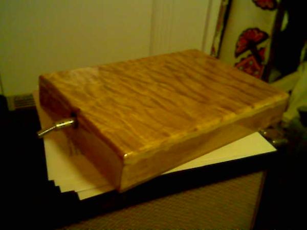 | Eric Wag's stomp-box project; I bought the double pickup model from you on ebay about a month ago and finally finished my project so I wanted you to see how it came out. I built a stompbox (a foot drum to play a beat while I play guitar) and I used your double pickup model so that I would have 1 pickup underneath the front of my foot and 1 underneath my heel so that I could have more versatility and a fuller sound. The result is it sounds awesome! I'm playing it through a cheap backup amp but I've played it through my main rig and its amazing, I plan on buying a small bass amp to play it through and I think it will be great. Thanks again for the great product, I plan on buying from you again. Enjoy the pics! Eric |